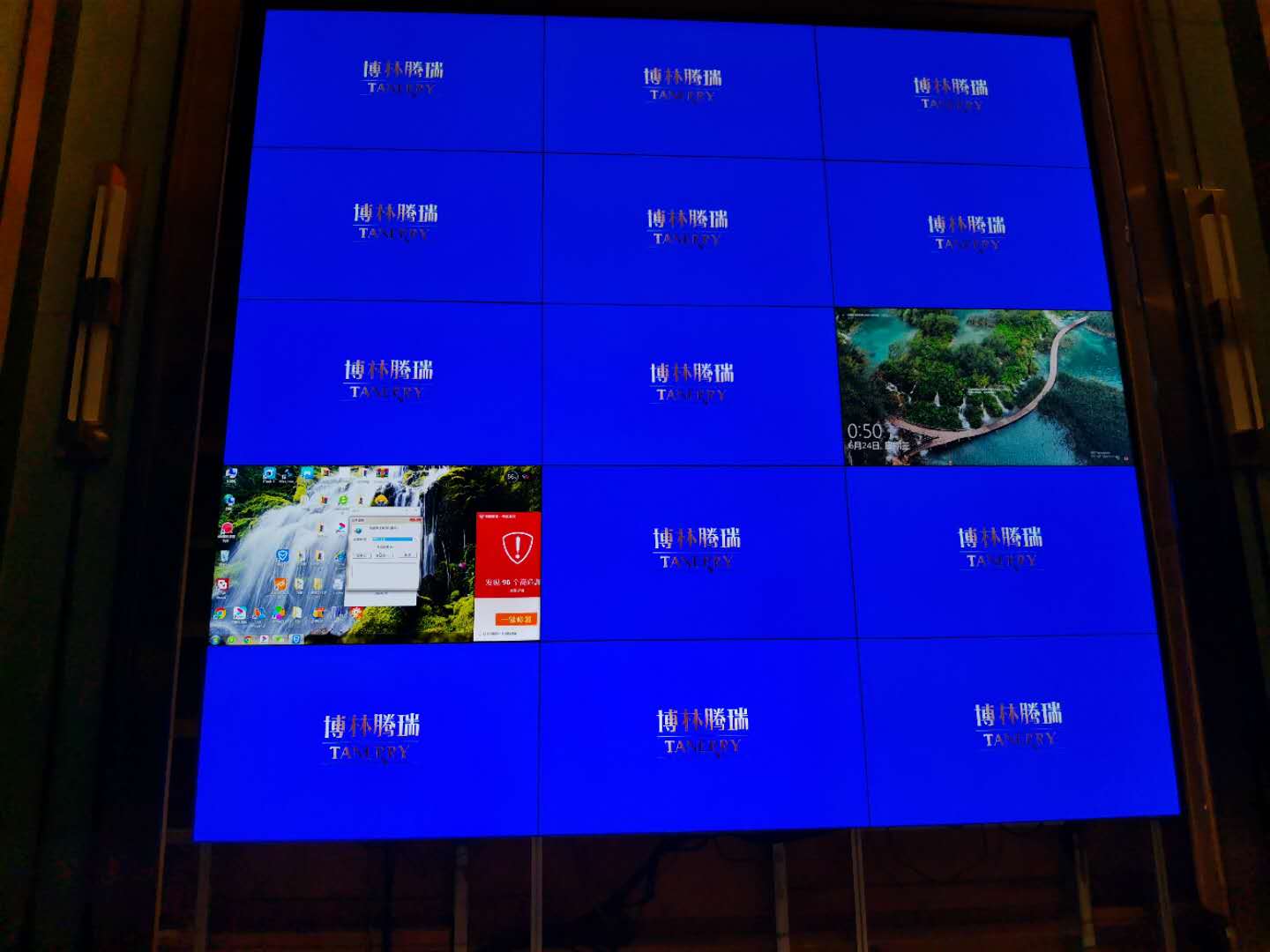 此项目采用55寸1.7mm 五行四列 拼接方式,实现超高清点对点显示