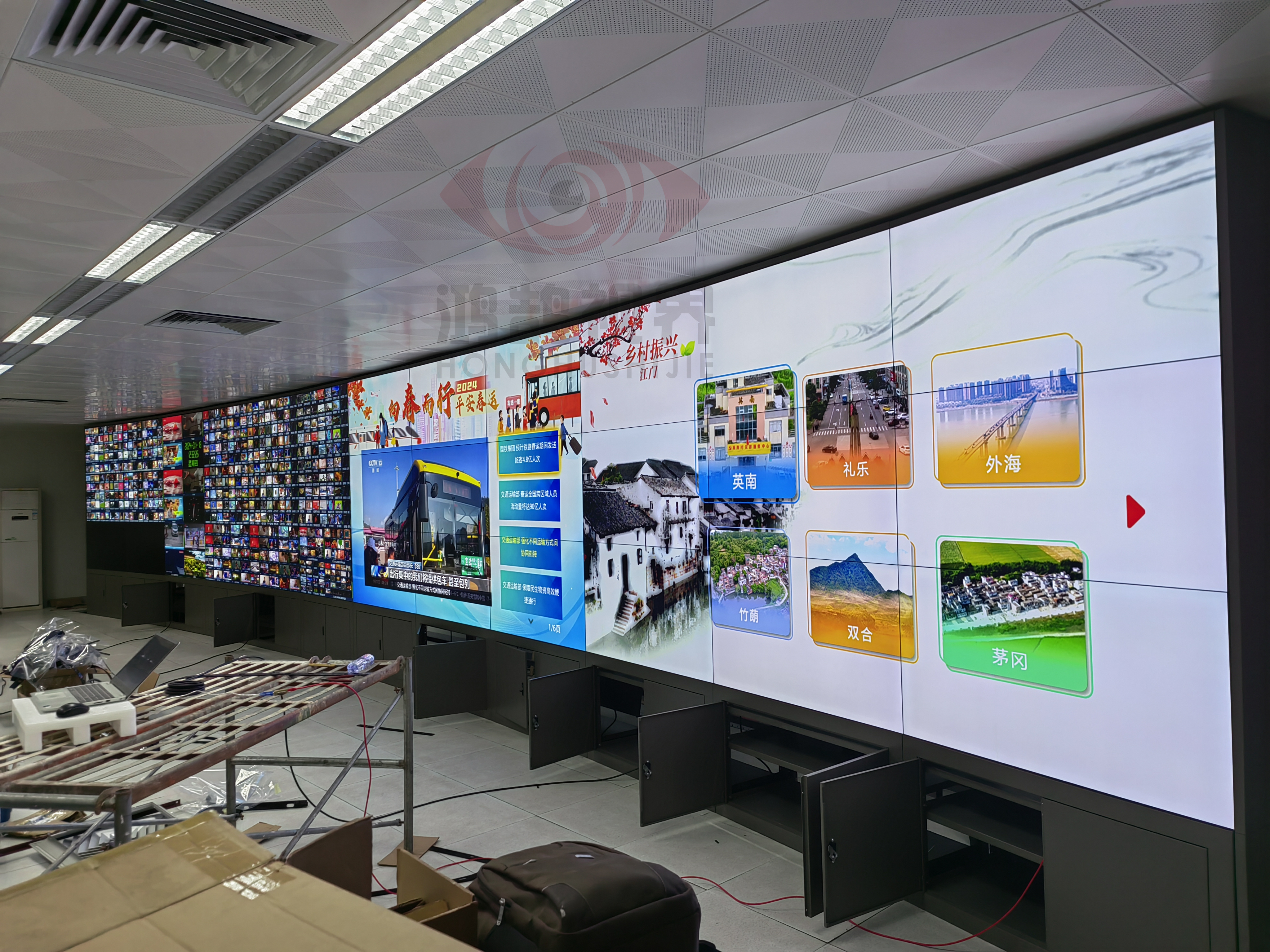 液晶拼接屏系统在现代电视台机房建设中起着至关重要的作用。江门电视台作为一个重要的媒体机构,其机房建设对于确保高质量、高效率的节目制作和播出具有不可替代的作用。关于拼接屏系统如何助力江门电视台机房建设的几个方面: