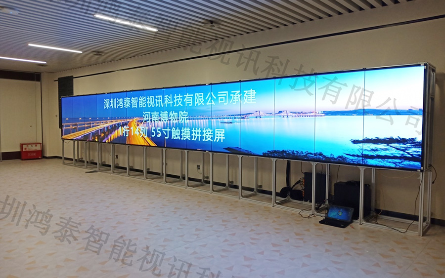 近日我司有幸承接河南博物院触摸互动拼接大屏项目,其主要作用是观众能够通过自主触摸互动的形式更好了解到院内所呈现的文物历史文化,客户的需求是要做到一个将近10米长,1米多高的触摸大屏。